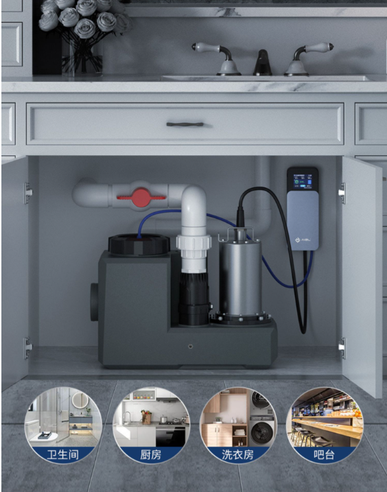 一個衛生間的排水采用20L以下的小泵就足夠了,不用擔心排水不及時的問題,因為20m3/h的排水量是足夠大的一個排水量,可以滿足家居地下室的排水量,這也要得益于智流污水提升器采用S1電機制式的油冷電機,可以讓地下室的排水做到頻繁排水。