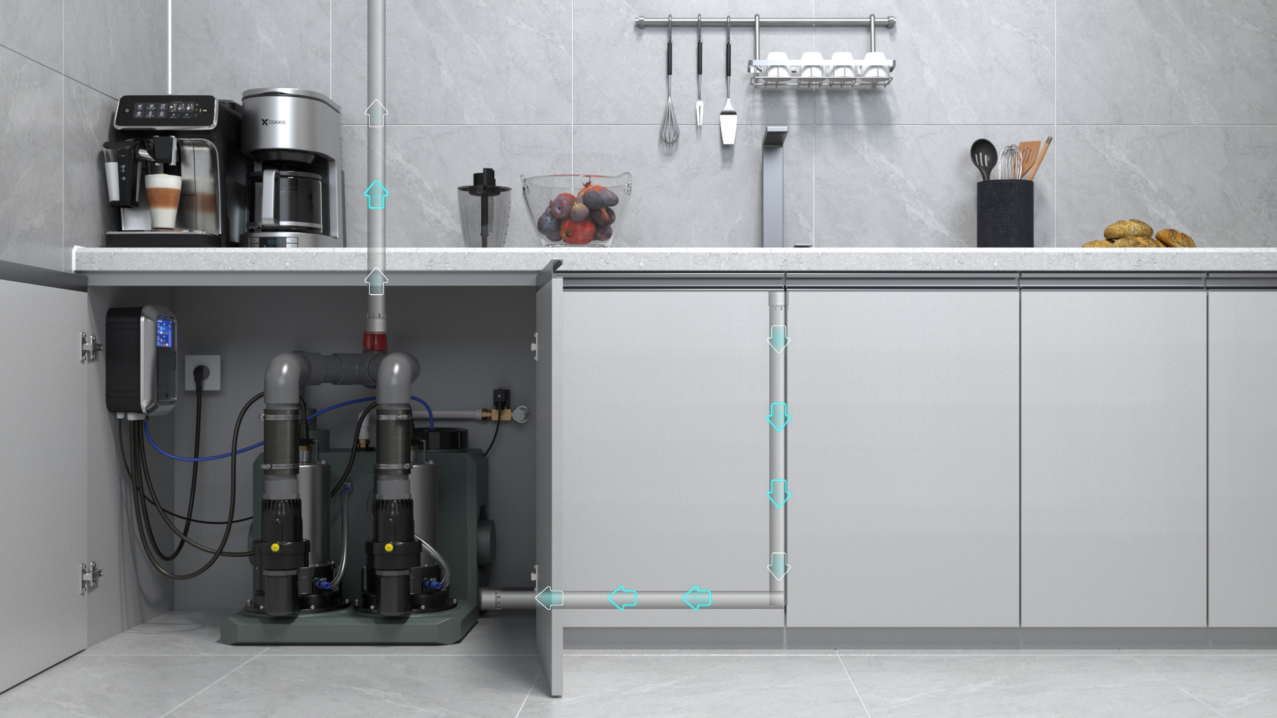 那么,地下室的空間一旦有了像是衛(wèi)生間,廚吧臺這樣的用水空間后,我們就要利用智能污水提升泵來解決這個地勢低的空間的排水問題了,這樣才能快速搭建一個地下室排水系統(tǒng),不用再受到地下室污水坑排水方式的污染環(huán)境和異味重的困擾了。