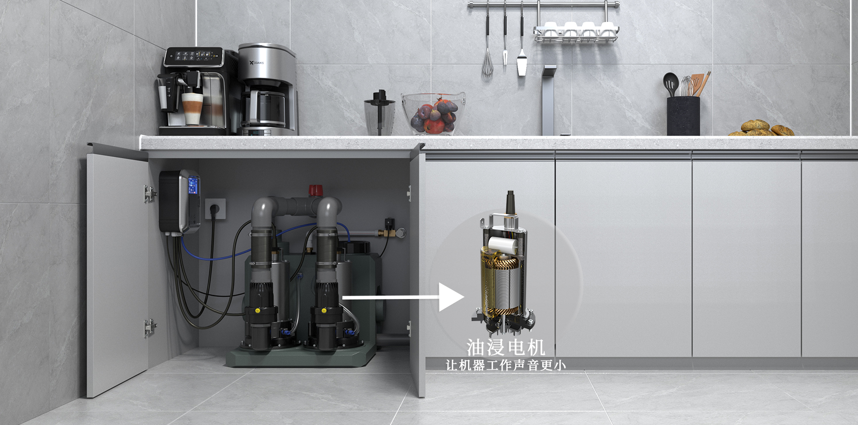而在解決好電機過熱的問題后,我們要是有廚房解決地下室的排水問題的話,那我們在預防電機過熱的基礎上也要預防油污過多帶來的堵塞問題,這時候我們可以選擇帶有自來水反清洗的污水提升泵,也就是機器可以自我完成定期的自清理,高壓的清水定期360度沖洗水箱的內壁,這樣雜物不會粘掛在機器內部,時間長了引起一些堵塞的問題。